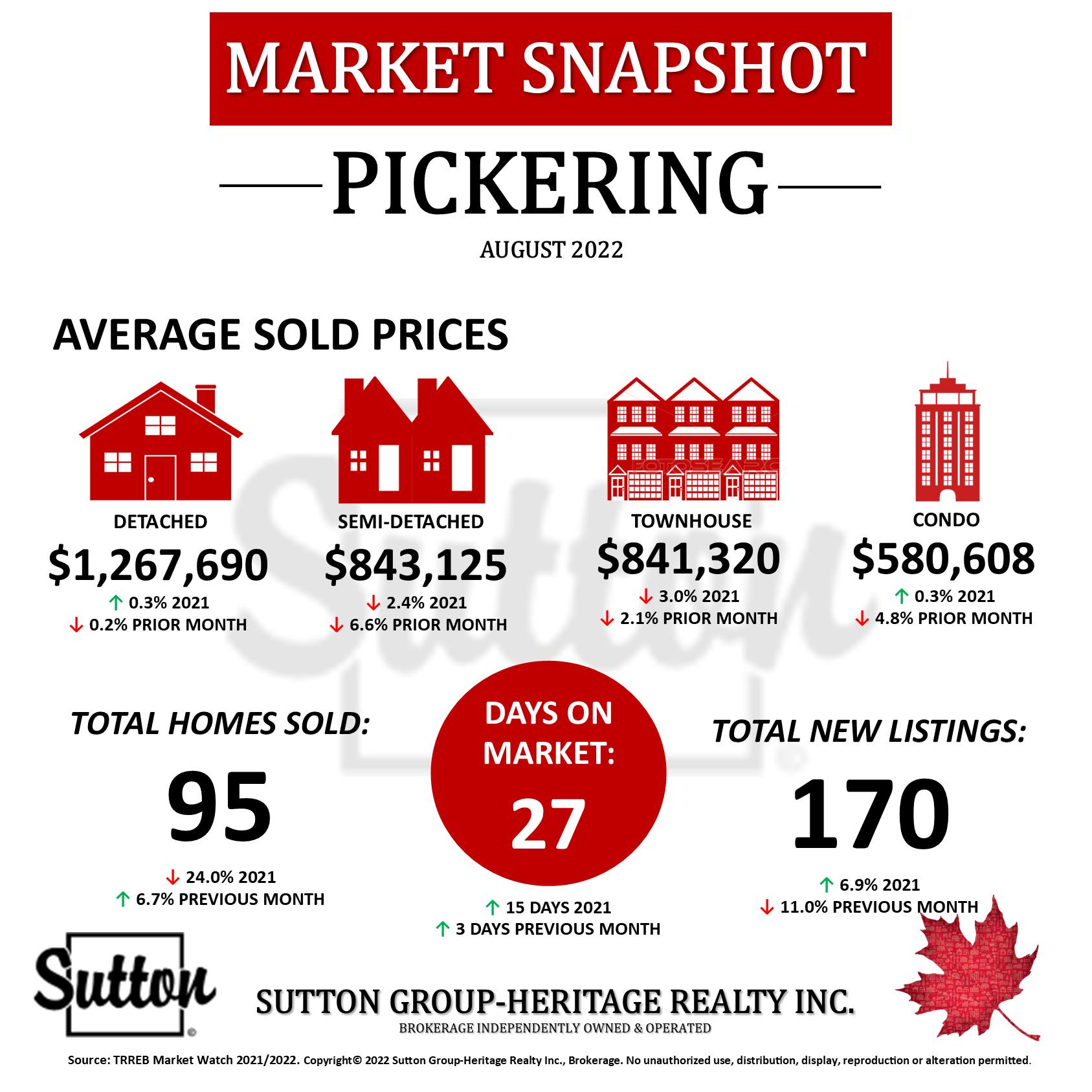 Market Snapshot for August 2022 Friday Sep 02nd, 2022 Share Tags: #torontorealestate #pickering real estate #ajaxrealestate #whitbyrealestate #oshawarealestate #